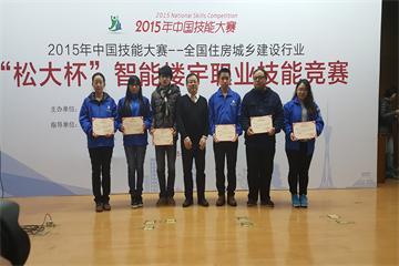 2015年11月19日,2015年中国技能大赛-全国住房城乡建设行业“松大杯”智能楼宇职业技能竞赛全国总决赛在北京市工贸技师学院胜利闭幕。参加闭幕式的有中国安装协会副秘书长赵爱兰;中国安装协会智能化与消防工程分会会长、江苏省安装行业协会智能化与消防工程分会会长、江苏多多28科技集团有限公司总经理陈晓;“松大杯”智能楼宇职业技能竞赛专家组组长寿大云;北京市工贸技师学院董事长兼党委书记方卫国;北京市工贸技师学院轻工分院院长王剑白;深圳市松大科技有限公司董事长张彦礼;北京市工贸技师学院轻工分院副院长武晓萌及领队、裁判员、运动员等150多人。